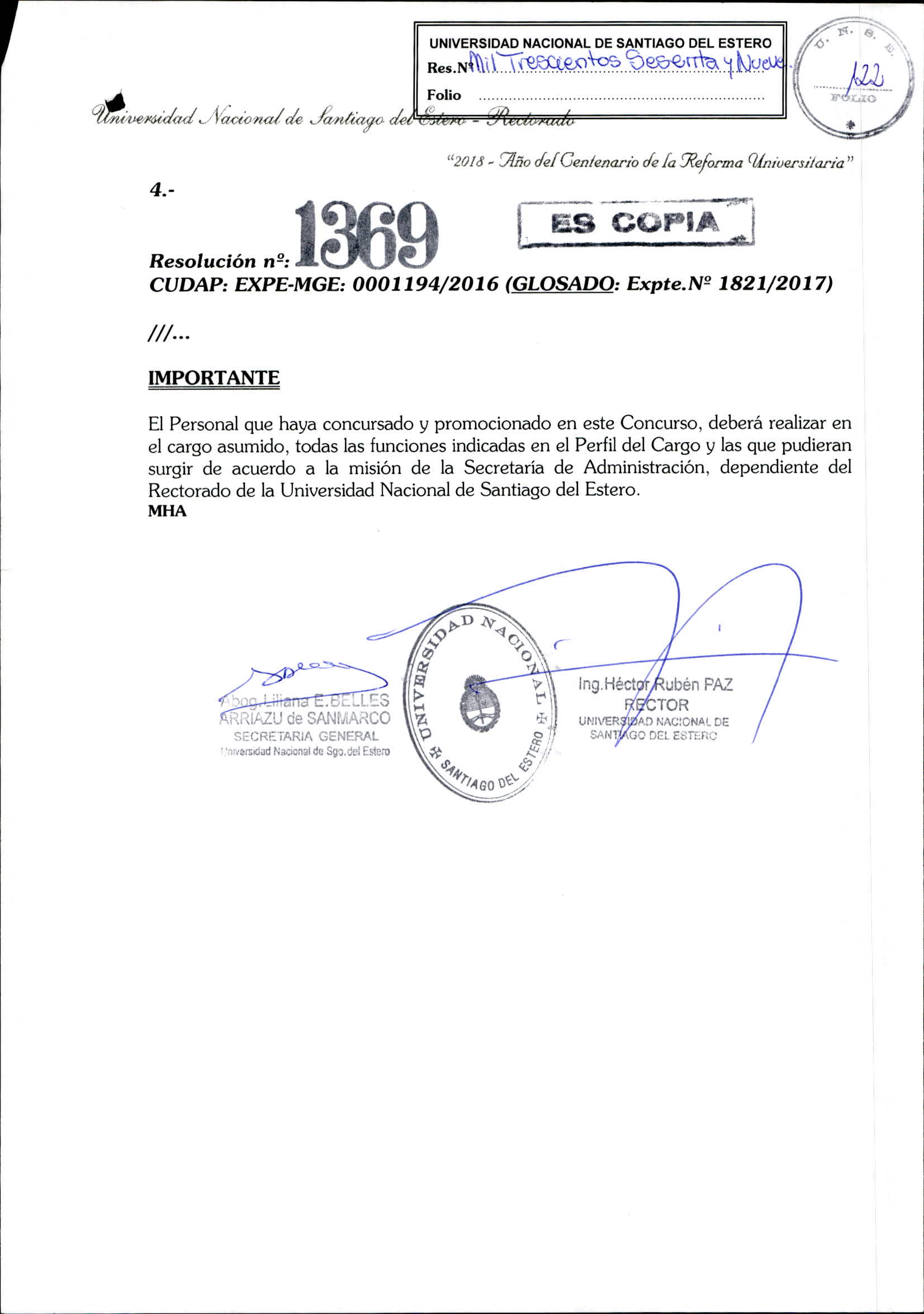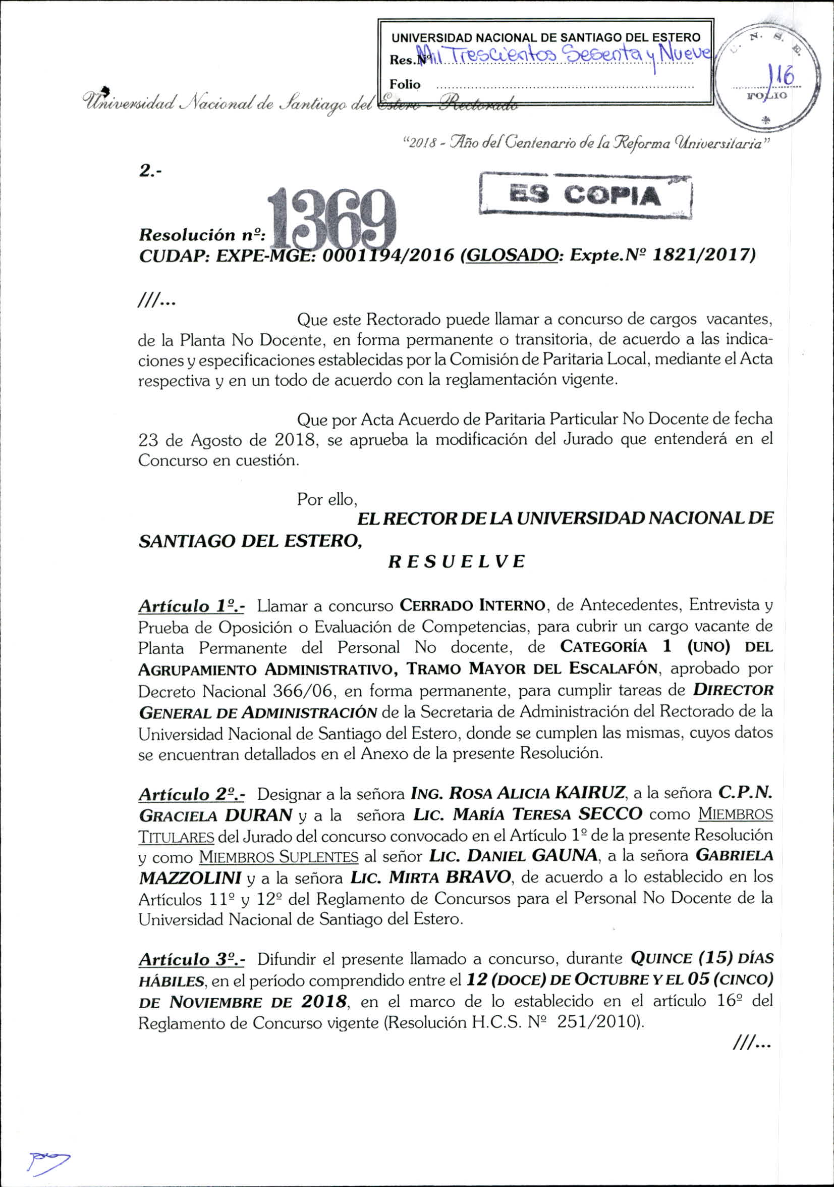Resolución de Concurso Nº 1369